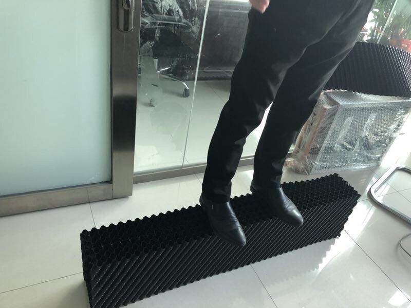 今天小編為了給大家的本公司生產(chǎn)的逆流方塔PVC填料,這是一款薄如紙的填料,可是你不能小看它,首先,不能因?yàn)樗谋《】此馁|(zhì)量,我們來看看這薄薄的填料能承受多少重量吧! 每張?zhí)盍隙己鼙?,每張?zhí)盍蟽H有0.3KG.小編把8張PVC填料粘了起來,所有的填料達(dá)到2.4KG,接下來小編演示團(tuán)結(jié)就是力量的說法,再薄的PVC填料,只要正反面粘貼起來,奇跡就發(fā)生了!小編體重65KG呢,站在粘貼好的8張?zhí)盍仙希尤徊蛔冃?,穩(wěn)如泰山,這質(zhì)量桿桿的。 小編推薦的,正是本公司賣得最火的逆流方塔PVC散熱填料,材料多薄已不是問題,問題是我們這質(zhì)量,不用自夸請看圖吧!
