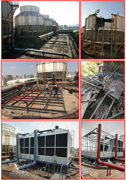 鴻翔花園位于深圳老城區(qū)之一的羅湖蔡屋圍區(qū)松園路。由于冷卻塔使用壽命長(zhǎng),冷卻塔填料老化,需要更換冷卻塔填料。接下來,根據(jù)鴻詳花園圓形冷卻塔填料的更換,介紹了拆卸和更換圓形冷卻塔填料的正確過程。 在清除