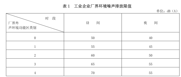 4.1.2 夜間頻發(fā)噪聲的最大聲級超過限值的幅度不得高于 10 dB(A)。 4.1.3 夜間偶發(fā)噪聲的最大聲級超過限值的幅度不得高于 15 dB(A)。 4.1.4 工業(yè)企業(yè)若位于未劃分聲環(huán)境功能區(qū)的區(qū)域,當(dāng)廠界外有噪聲敏感建筑物時,由當(dāng)?shù)乜h級 以上人民政府參照 GB 3096 和 GB/T 15190 的規(guī)定確定廠界外區(qū)域的聲環(huán)境質(zhì)量要求,并執(zhí)行相應(yīng)的廠界環(huán)境噪聲排放限值。 4.1.5 當(dāng)廠界與噪聲敏感建筑物距離小于 1m 時,廠界環(huán)境噪聲應(yīng)在噪聲敏感建筑物的室內(nèi)測量, 并將表 1 中相應(yīng)的限值減 10dB(A)作為評價依據(jù)。